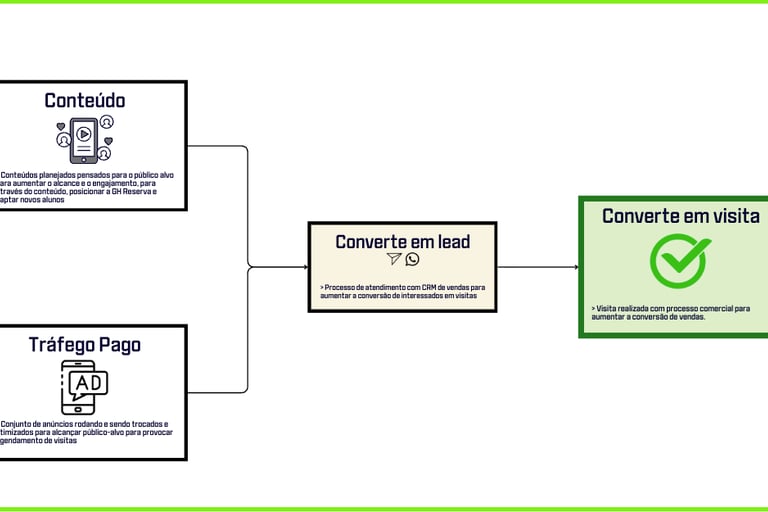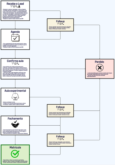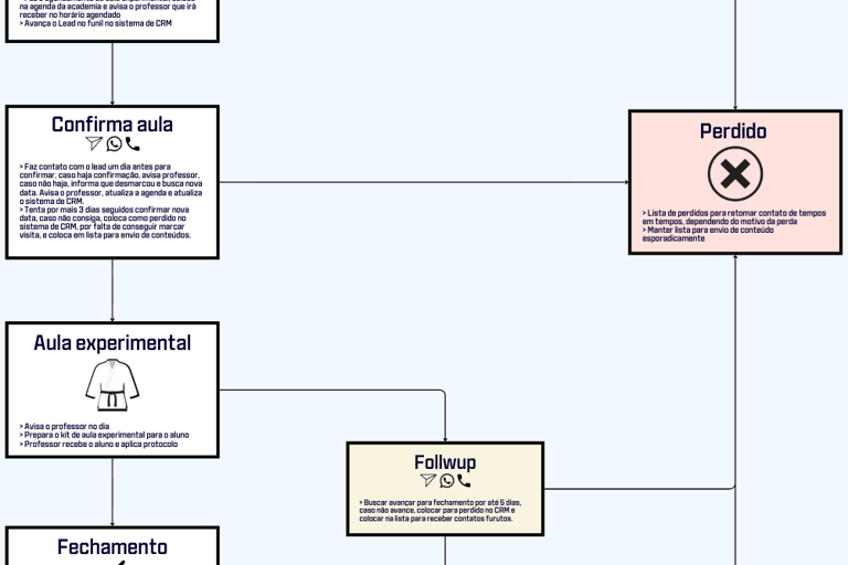 Desenhar e implementar um processo de CRM de vendas para o acompanhamento de leads, estruturar o funil comercial e aumentar a conversão de visitantes e contatos em matrículas.